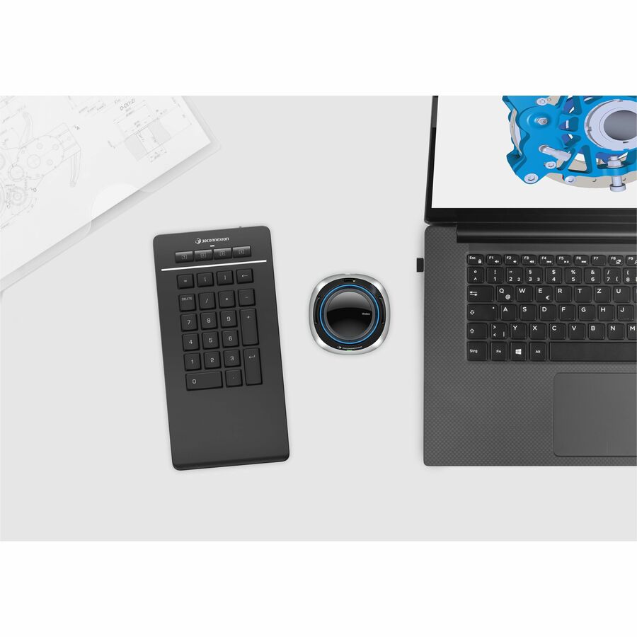 The wireless 3Dconnexion Numpad Pro is designed to improve and accelerate your workflow. The programmable 3Dconnexion keys recognize and adapt instantly to your applications and turn the numpad into the perfect companion for your laptop, compact keyboard and SpaceMouse.