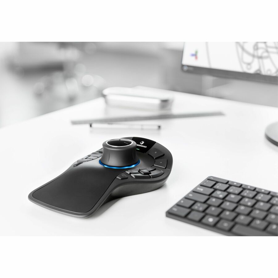 SpaceMouse Pro Wireless offers the power, versatility and customization exclusive to a 3Dconnexion product, purpose-built for engineers, architects, 3D artists and designers on the move. QuickView and 3Dconnexion Keys, keyboard modifiers, a precision 6-Degrees-of-Freedom (6DoF) sensor, and more, are housed in a powerful wireless setup providing up to one month* of use before needing to recharge via USB-C. Durable surface coating and an ergonomic design1 will empower users to harness the 3D-centric functionality of SpaceMouse Pro Wireless in one hand, while freely utilizing a standard mouse in the other. With Bluetooth® , a small, high-performance Universal Receiver, and a tailored carry case, SpaceMouse Pro Wireless is the right choice for design professionals who seek the perfect balance between advanced functions and portability.