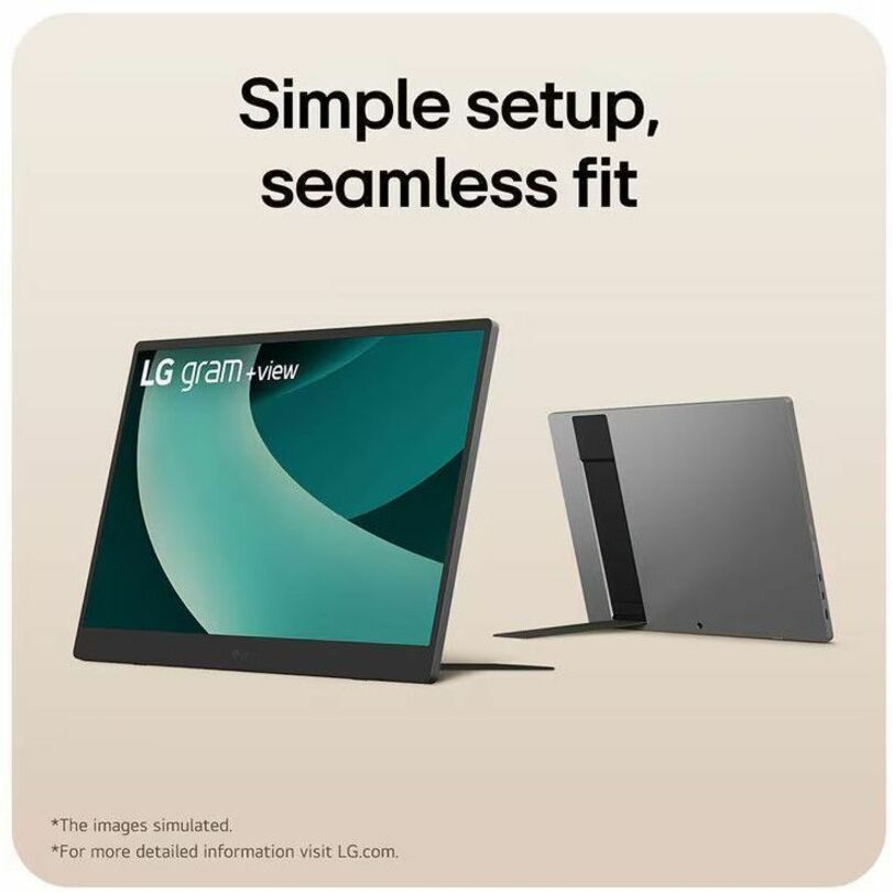 The stylish titan silver colour of gram +view complements any space and harmonizes seamlessly with the slim design of gram. Its integrated stand, "Kickstand," unfolds easily for quick setup and use anywhere, requiring no additional tools.