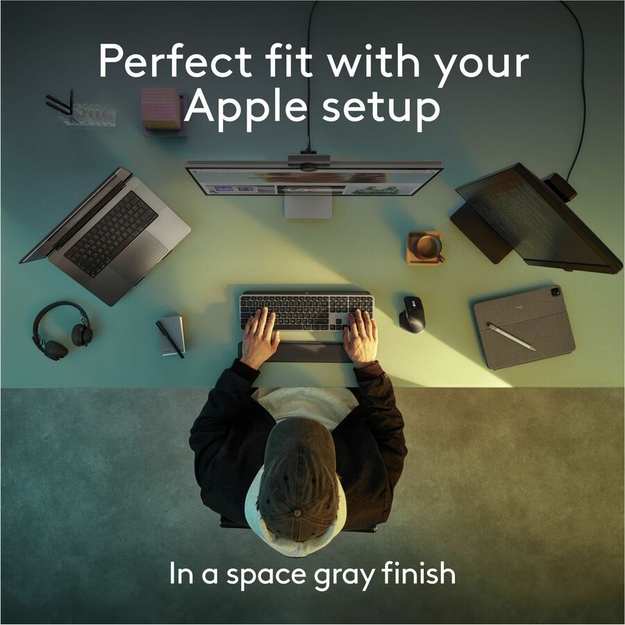 Introducing MX Keys S for Mac - a low-profile wireless keyboard optimized for macOS and iPadOS With a Mac-specific key layout, matching Apple finishes, and a design that blends into your Apple setup. Offers a fast fluid precise typing experience, and customizable, time-saving Smart Actions that automate your most repetitive tasks with a single keystroke. The smart backlighting lights up as your fingers approach the keyboard and automatically brightens or fades to suit the time of day. Now you have more control of your backlighting brightness and duration with Logi Options+.