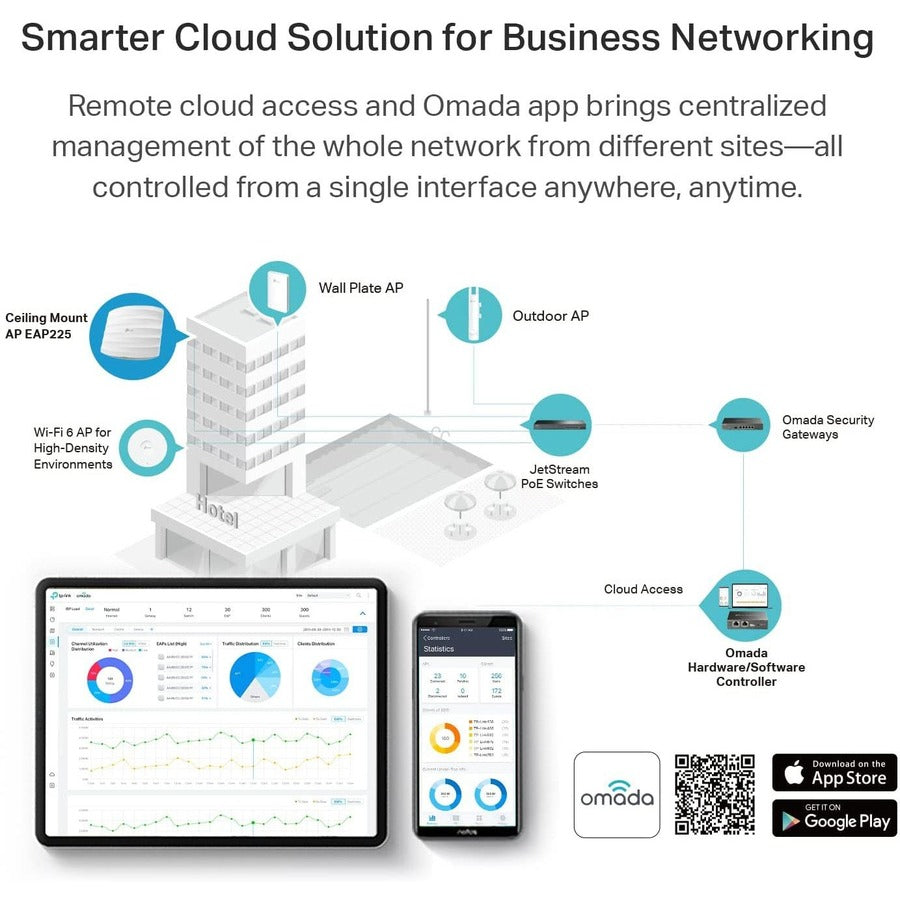 The Omada business-grade 11ac Wi-Fi solution is engineered to handle heavy multi-user usage in large areas without encountering the same stability issues found with standard routers and access points purposed for home use. It's the perfect fit for motels, salons, chain-stores, schools, and restaurants.